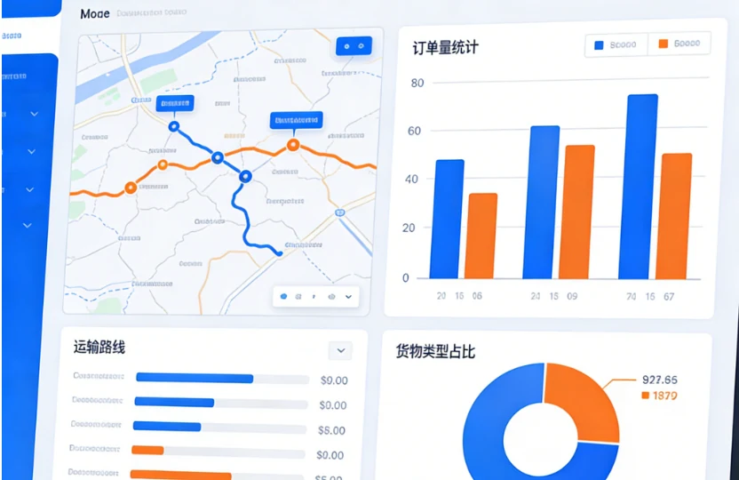 集成订单管理、车辆定位、进度可视化、决策分析、电子结算,构建全链路数字化闭环。