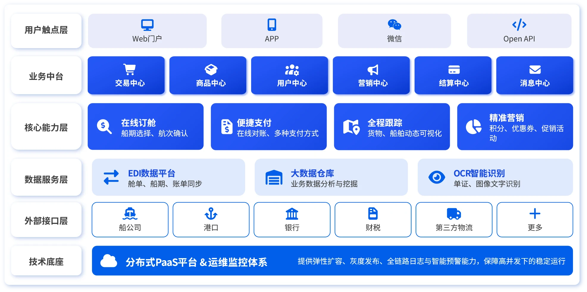围绕海运订舱场景,构建从服务上架到履约跟踪的全链路数字能力。