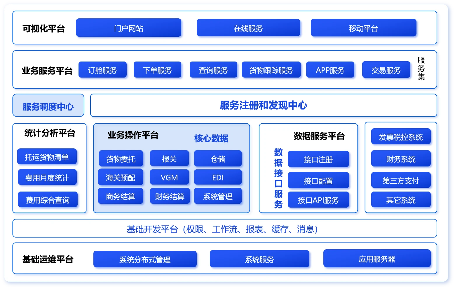 系统对接船公司、海关、码头等外部系统,实现业务报文自动流转与状态回写。