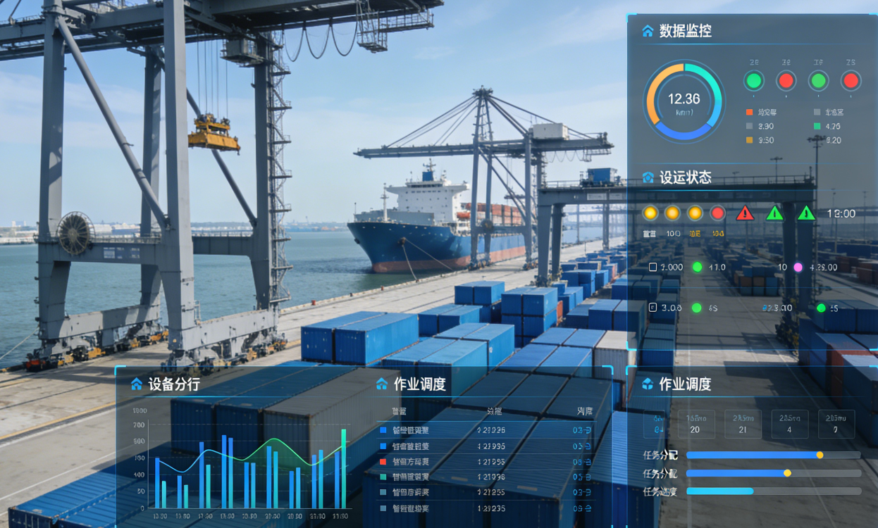 系统通过图形化操作界面与智能算法平台,实现自动计划排产、实时作业监控、自动船舶配载及智能机械调度。