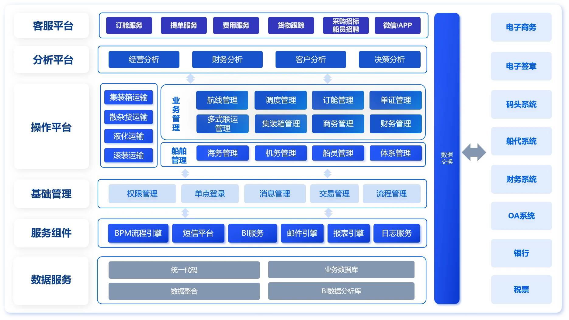 与海关、海事、码头等外部系统自动交换报文,减少重复录入与手工对接误差。